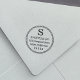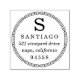 Our monogram return address stamp features a dotted, art deco inspired round border with your single initial monogram and return address details inside, in classic and timeless lettering.