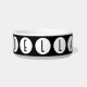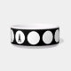 Crisp white dots filled with art deco black letters on a black background to display your dog's name in a distinct style. BELLA is the sample dog name but you can customise each letter in this vintage modern design with up to 11 characters to personalise the pet bowl. Elegant typography for your pet to fit your aesthetic. The simple black and white geometric dot design will add a touch of vintage style to your pet's dinner and drinks. Serve your pet's drinks and dinner in classic fashion.