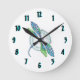 Original whimsical drawing by Sandra T. Gale of a colourful dragonfly over a pale teal circle. Great design for home or garden or kids rooms.