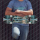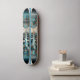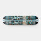 The "Deco Flight Lounge Deck" is a Decopunk-themed skateboard deck graphic that portrays a luxurious aviation lounge from the 1930s, updated with futuristic elements. The lounge is depicted as a haven of comfort and innovation, adorned with Art Deco styling, advanced flight information displays, and elegant seating areas. It captures the excitement of air travel during the Decopunk era, with passengers in stylish, retro-futuristic attire eagerly awaiting their flights. The aesthetic fuses the vintage glamour of aviation with the advancements of modern technology, using a colour palette of sky blues, jet blacks, and metallic silvers. This design conveys the fusion of historical aviation elegance with the cutting-edge technology of the future, reflecting the Decopunk genre's characteristic blend of past luxury and future innovation.