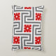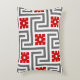 Art Deco Greek key or labyrinth pattern accent pillow in dark graphite grey / grey and white, accented with deep Chinese red