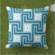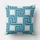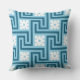 Art Deco Greek key or labyrinth pattern throw pillow in soft sky blue and dark navy / indigo, accented with white