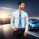 An artistic tie with a blue grunge pattern inspired by Mondriaan, art deco and leaded glass design.