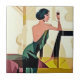 Ceramic tile in an elegant Art Deco / jazz age lady in jade green, holding a wineglass, in a semi-abstract, modern art style