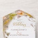 This design features a soft peach, green, and gold flower border on a soft brown blur arch. Personalised All-In-One invitations are a unique combination of both a beautifully printed custom invitation with an easy to tear off perforated RSVP postcard. And they are so easy to use! You simply fold, then seal the back flap with the three included clear stickers, and mail. And when your guests receive your custom invite, they just tear the perforated RSVP Card off and drop it back in the mail to you!