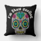 Beautiful "I'm Skull Surfing" lettering throw pillow with colourful and decorated abstract skull for the Halloween season.