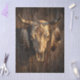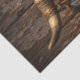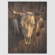 Decoupage tissue paper featuring weathered cattle skull adorned with geometric tribal markings and hanging feathers.
