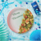 Decorated Christmas tree with merry christmas text Paper Plate