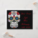 Painted human skulls with blue flower eyes and heart to customise, personalise by changing to your name