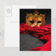 Decorated mask for masquerade on red velvet postcard