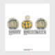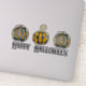 Fun Halloween vinyl decal features watercolor illustration of fancy decorated pumpkins with customisable text.