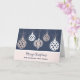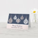 Merry Christmas for friend and her family card with a modern design with rose gold ornaments and blue background.