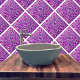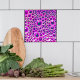 Ceramic tile with 3D look bubble pattern in magenta. Sometimes called fushia or mulberry. Note that in this variation the colour inside of the bubbles is dark green. This decorative tile was designed for the bathroom. The glaze is glossy which makes it always look wet. Put these in your shower or behind your sink. This comes from an actual handmade tile from Oregon Tile maker Fay Jones Day