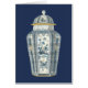 A beautiful print of a decorative Asian urn, painted in hues of blue and white. Intricate floral designs cover the urn, giving it a peaceful feeling. Purchase your copy today!