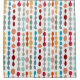This shower curtain has a mid-century modern design of circles and ovals strung together in retro colours strung together on a field of white.