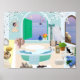 Decorative Bathroom Poster with claw foot bathtub Teal on Ocean