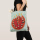 Abstract tulip all over printed bag with a decorative illustration of a red tulip over light blue background. The lovely flower’s bright red petals also resemble a flame. This beautiful floral illustration brings spring mood with its lively and cheerful colours.