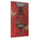 Two pale butterflies hover around a birdcage in this painting by Norman Wyatt. Leaves hang over the birdcage, and it all rests on a crimson background. Order this print today!
