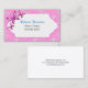 Three butterflies flutter on the top left corner of a coloured hued frame. In the centre of the white background frame appears your name and basic details in an elegant script font. This design is suitable for those in the creative or artistic fields, but can be used as a business card for almost any business or industry.