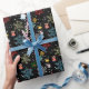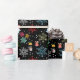 The wrapping paper for Christmas celebration in designing with the Christmas ornaments such as Christmas tree, Christmas bell, Christmas wreath and Christmas decor leaves in retro prints with a presentation of green colour.
