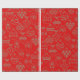 The wrapping paper for Christmas celebration in designing with the Christmas ornaments such as Christmas tree, Christmas bell, Christmas wreath and Christmas decor leaves in retro prints with a presentation of green colour.