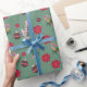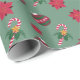 The wrapping paper for Christmas celebration in designing with the Christmas ornaments such as Christmas tree, Christmas bell, Christmas wreath and Christmas decor leaves in retro prints with a presentation of green colour.