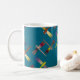Decorative coloured seamless pattern with cute dragonfly. Vintage background with many dragonflies silhouettes