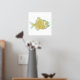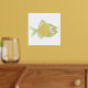 Chic foil print, with a gold foil and aqua fish, on a white background.
