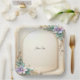 Decorative Floral Frame with Pearls Paper Plate