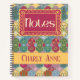 A bright folk art design feature intricately detailed tickets filled with various flower designs and interspersed with quatrefoil solids and patterns. The pronouncement, "Notes", is ornately framed with a magenta pink lace border.