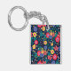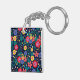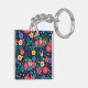 Decorative Flowers Leaves Black Background Key Ring