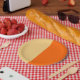 This plate has split colours of orange cream.