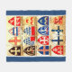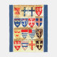 coat of arms in multi colors. vintage painting with an image of an early roll of arms belonging to the society of antiquaries of london with various coat of arms in a multi colored pattern.