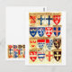 coat of arms in multi colours. vintage painting with an image of an early roll of arms belonging to the society of antiquaries of london with various coat of arms in a multi coloured pattern.