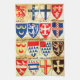 coat of arms in multi colors. vintage painting with an image of an early roll of arms belonging to the society of antiquaries of london with various coat of arms in a multi colored pattern.