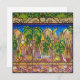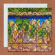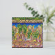 A intricate pattern of an iron gate overlays a colourful garden scene with potted plants and vines. The composition combines vibrant colours and geometric shapes, creating a visually captivating piece. Back: Blank