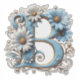 A large blue letter B features gold trim, raised edging, and intricate floral accents with daisies, vines, and pearls. Perfect for branding, invitations, greeting cards, and decorative typography projects.