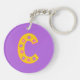 Decorative personalised monogram letter C on one side and Cali name meaning on the reverse keychain. Ideal for a girl who has a name beginnings with C. Yellow, with pink and purple letter art other letters and colours available on request. © Art and design by Sarah Trett for www.mylittleeden.com and namesense.