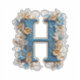 A large blue letter H features gold trim, raised edging, and intricate floral accents with daisies, vines, and pearls. Perfect for branding, invitations, greeting cards, and decorative typography projects.
