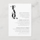 A bold, decorative font immediately catches your eye and sets the tone for most pieces of this modern, minimalist wedding suite. The wedding paper napkin shown here features unique 'FAQ' text and headings, with an optional, diagonal pinstripe backdrop for your initials and wedding date on the reverse. A heart-accented ampersand on the back adds an additional fun accent. Search ID887 to see all the products in this wedding set.