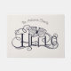 Decorative ornament with complemented script "hello" and a family name in handwritten font for a nice home decor accent. Choose between two colour options