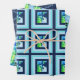 Stylish designed paper gift wrap sheets, three different patterns in shades of blues, the happy birthday text on the 3rd sheet can be switched to any message to suit any occasion.