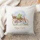 Decorative pillow "Happy Easter" with the image of a bunny on a bicycle.