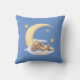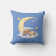 Decorative pillow with a cute plush rabbit sleeping in the clouds on the moon.