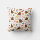 Decorative pillow with a New Year's pattern, cute pictures of candies, lollipops and gingerbread cookies, bows and leaves on a white background.