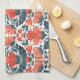 Decorative red flowers tea towel