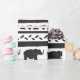 Decorative repeat seamless pattern with hand drawn elephants lines and triangles. Hand painted black stripes and triangles on white background.