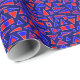 An original design made up mostly of colour decorated shapes, mostly triangles, but also with some rectangles and circles in red and blue edged with white.