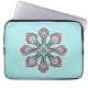 Snowflake laptop sleeve with a lovely snow flake drawn in digital ink with intricate dots and decorative elements and coloured in cheerful white, pink and blue. Great for bringing fun in the cold winter days when everything is freezing.