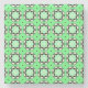 A decorative coaster featuring a symmetrical geometric pattern with blue, white, and brown hues shown from the front and back on a gray background.